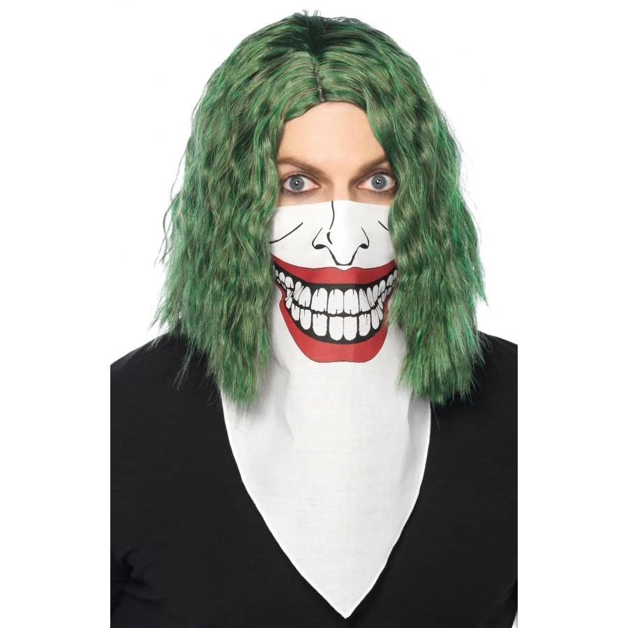 BANDANNA VILLAIN. This white bandanna with drawn on nose and large red-lipped mouth in large smile mode will prove you might just be a joker! White,red. One size fits most adults.