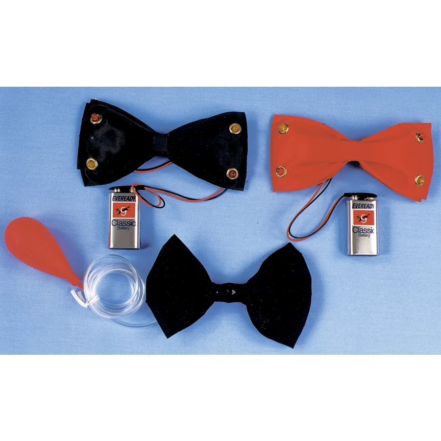 BOW TIE LIGHT UP 5 1/2in. Dazzle your friends with this unique 5 and 1/2 inch tie. Complete with 4 flashing lights powered by a 9 volt battery. Red only. Battery not included.