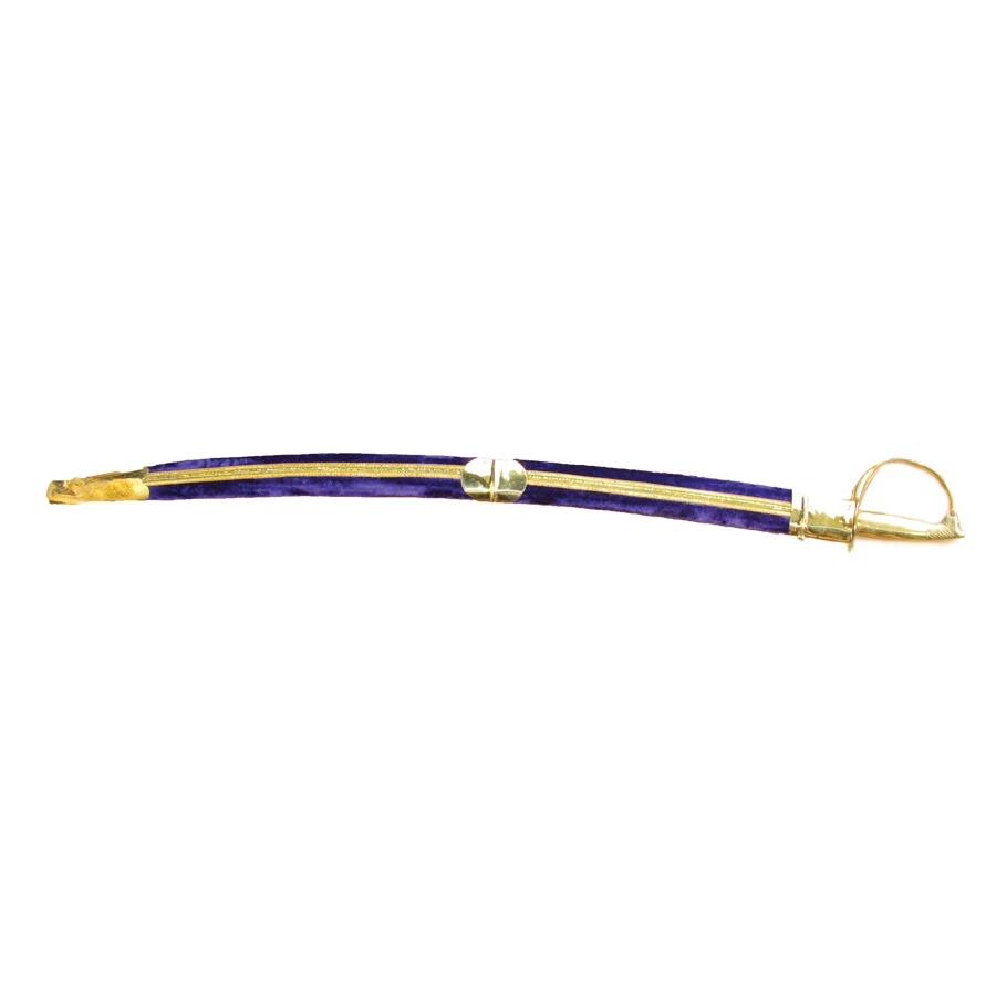 CALVARY SWORD 36IN PURPLE. Handsome 36 in long curved metal sword with sheath. Great for collectors, display, re-enactors, or as a costume accessory. Beautiful quality.