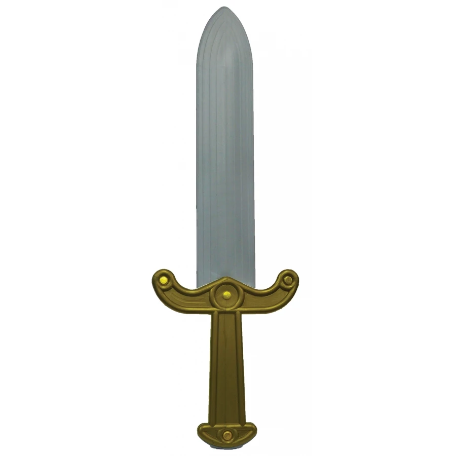 DAGGER ROMAN SILVER. Sturdy plastic sword with a silver metallic sheen. Very durable with no sharp edges. 14 inches long.