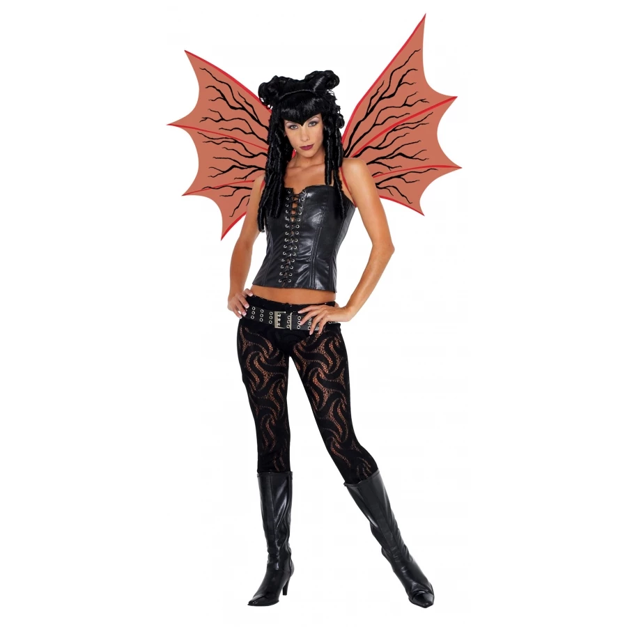 DEMONETTE WINGS RED W/BK VEINS. Gothic scalloped wings with easy to wear shoulder straps and organic vein design. Red wings with black veins. One size fits most adults.