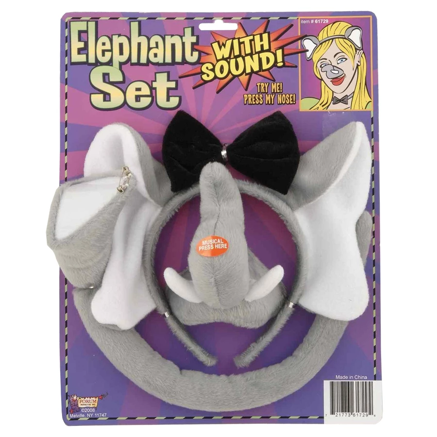 ELEPHANT SOUND SET. A carded ear, nose and tail set that will look cute on any child! Makes appropriate animal noise when nose is pressed. One size fits most children.