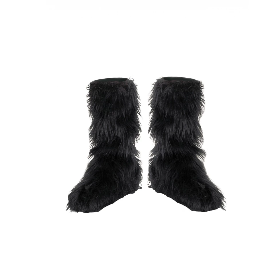 FURRY BOOT COVERS. Whether your child’s costume is a bear or a werewolf, this is the perfect accessory to complete your look! Made of acrylic and polyester blend black faux fur. Boots have an elastic strap. One size fits most children.