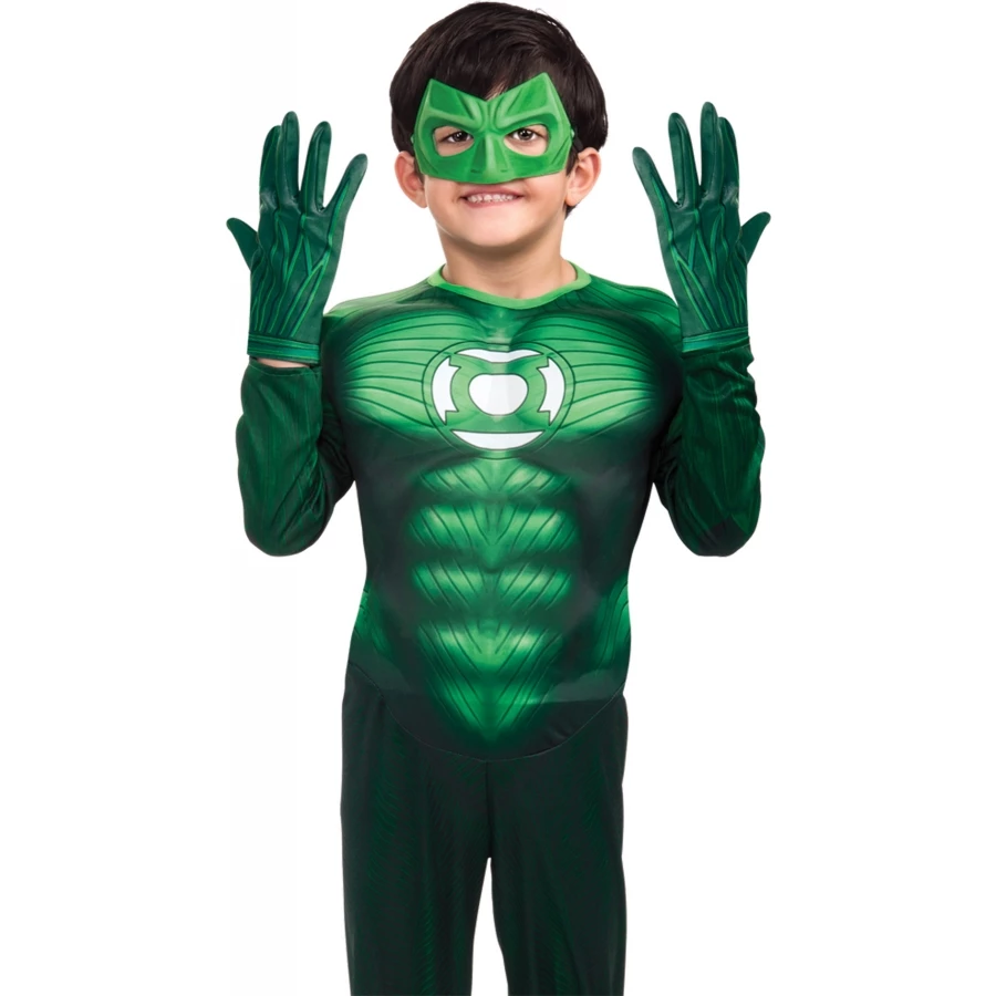 GLOVES HAL JORDAN CHILD. Poly cotton green gloves with striped accents. One size fits most children.