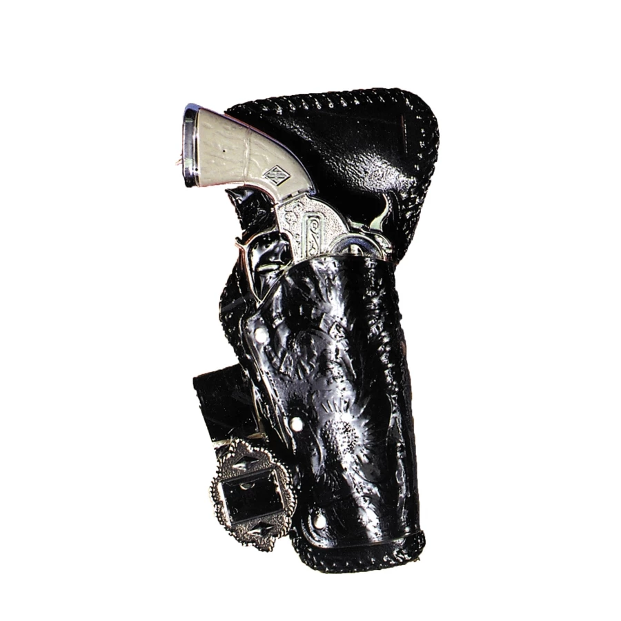 GUN SET CHILD SINGLE. Vinyl holster with die-cast repeater cap pistol. Uses paper roll caps, not included.