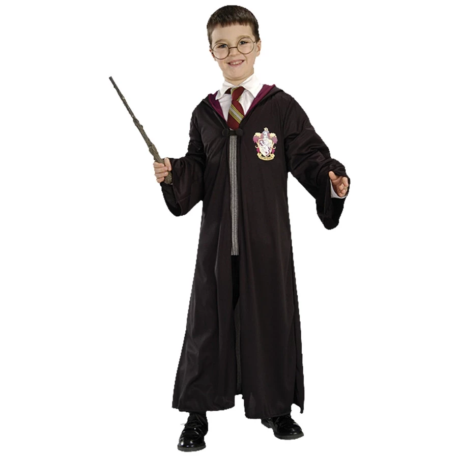 HARRY POTTER COSTUME KIT CHILD. A quick and easy Harry Potter costume kit. Hooded robe, clasp, wand, and glasses. Fits child medium sizes 8-10. Blister package.