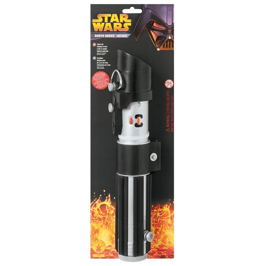 LIGHT SABER DARTH VADER. Very similar in look to the movie version. Sturdy injection molded plastic with light-up telescoping blade. Unit requires 2-AA batteries not included.