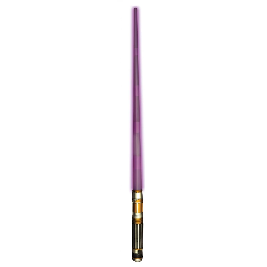 LIGHT SABER MACE WINDU. 36 inch flashlight with extending PURPLE plastic sword. Uses 2 AA batteries, not included.