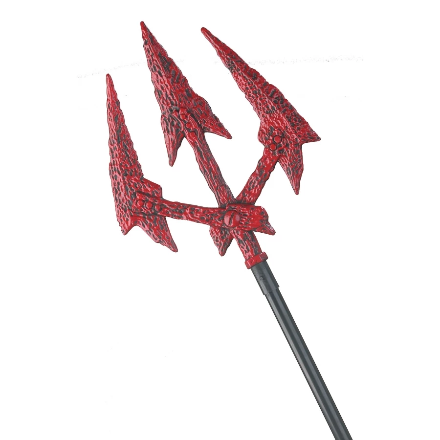 PITCHFORK. You have never had a trident like this one. Molten look red blades on a plastic staff. 48 inches long.