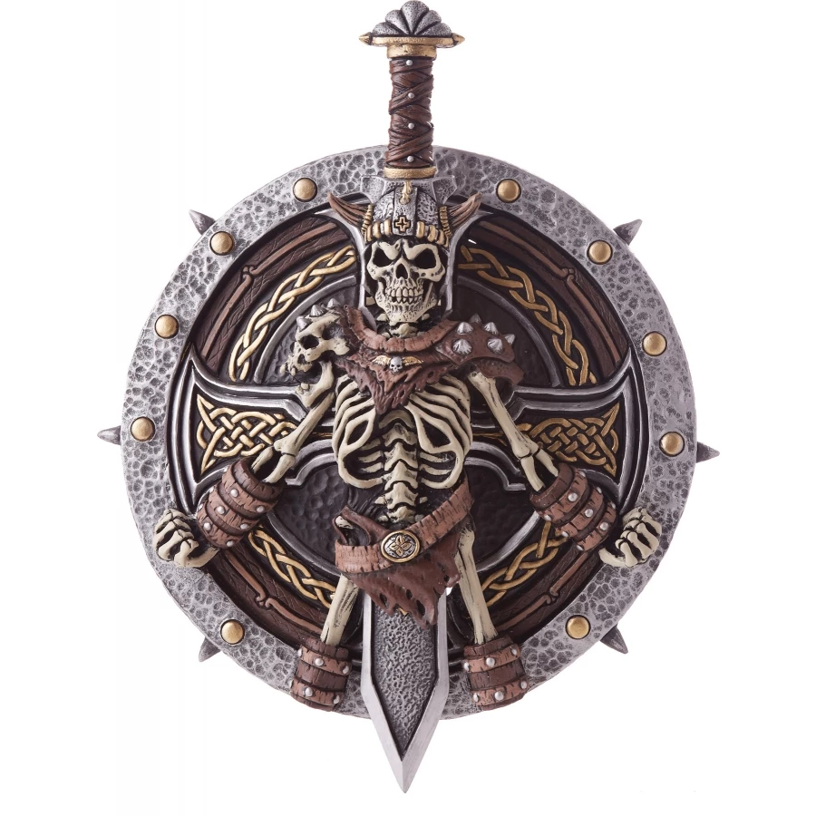 SHIELD & SWORD VIKING LORD. A wonderful shield and sword set perfect for any viking character. Removable sword. Great detailed decorations! 18″ in diameter.