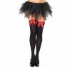 STOCKINGS THI HI W/BOW WT/BU. White thigh high stockings with blue bows. One size fits most adults. Opaque nylon.