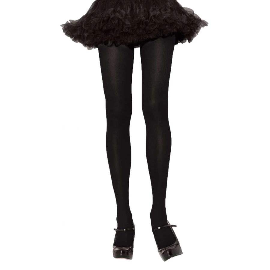 TIGHTS ADULT BLACK 1 SIZE. 100% nylon opaque tights. One size: 4ft 10in to 5ft 8in. 95lbs to 160lbs.