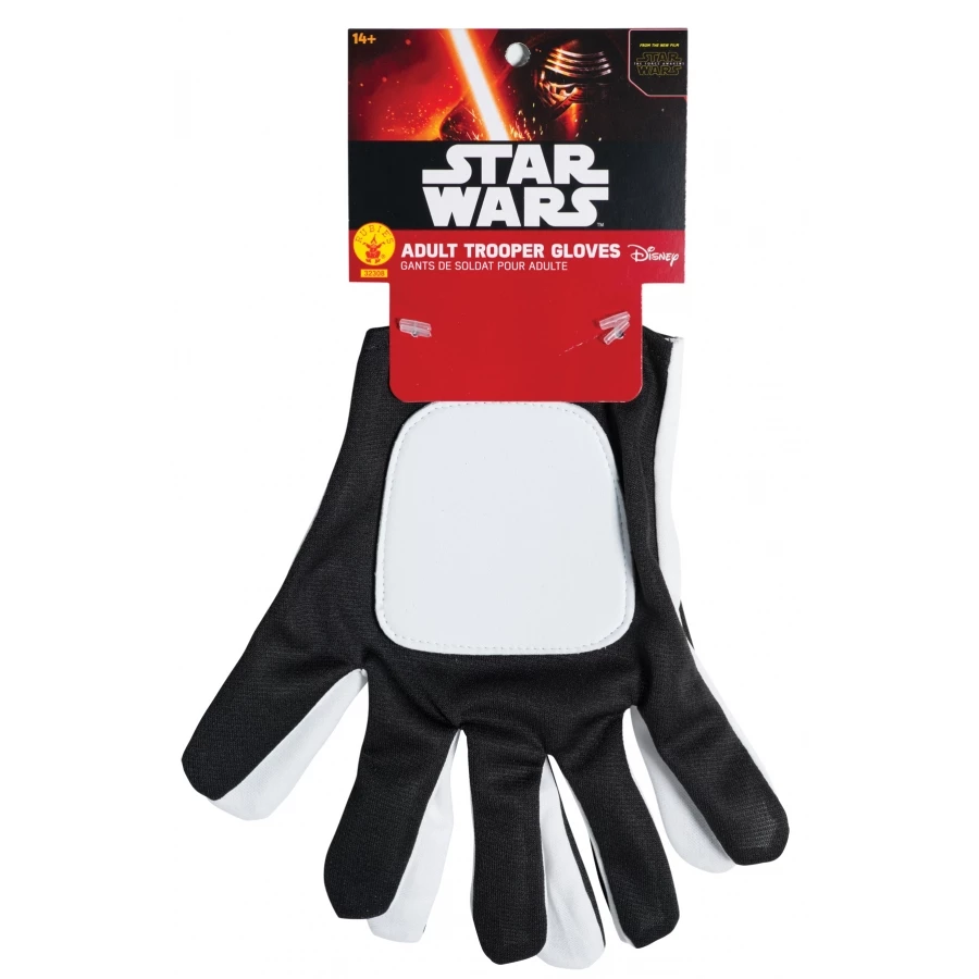 TROOPER GLOVES ADULT. The perfect accessory for your costume of Trooper from the seventh installment of the Star Wars movie series franchise. Black leather-look gloves. One size fits most adults.