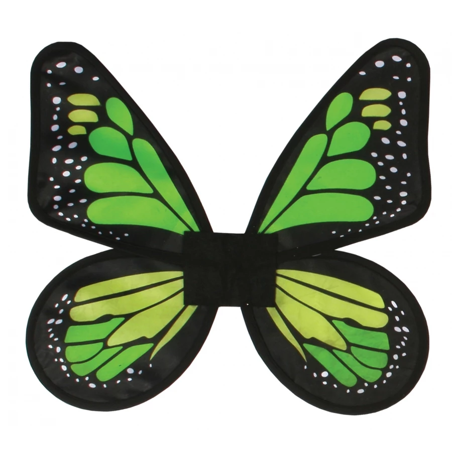 WINGS BUTTERFLY SATIN AD GREEN. Vibrant colored satin screen-printed wings for adults. For ages 15+. Green/lime.